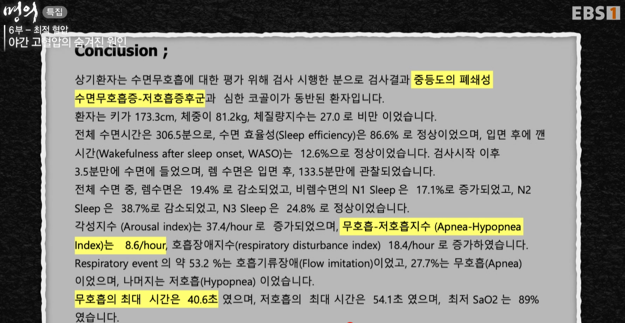 마와 선식을 요구르트와 갈아서 아침식사를 하는 등 식단관리를 하면서 혈압약을 3개에서 1개로 줄일 수 있었습니다. 많은 50대 남성들이 수면무호흡증에 시달리지만, 자가 진단이 어려워서 방치되어 있는 경우가 있습니다.