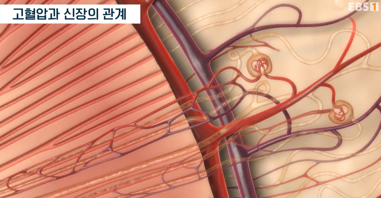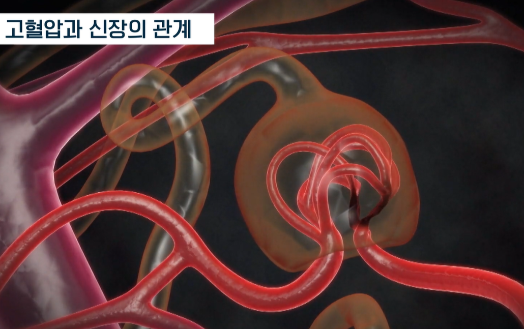 신장(콩팥)은 수많은 모세혈관으로 이루어진 사구체를 통해 노폐물을 걸러내는데, 혈압이 올라가면 사구체가 노폐물을 잘 걸러내지 못하게 됩니다.