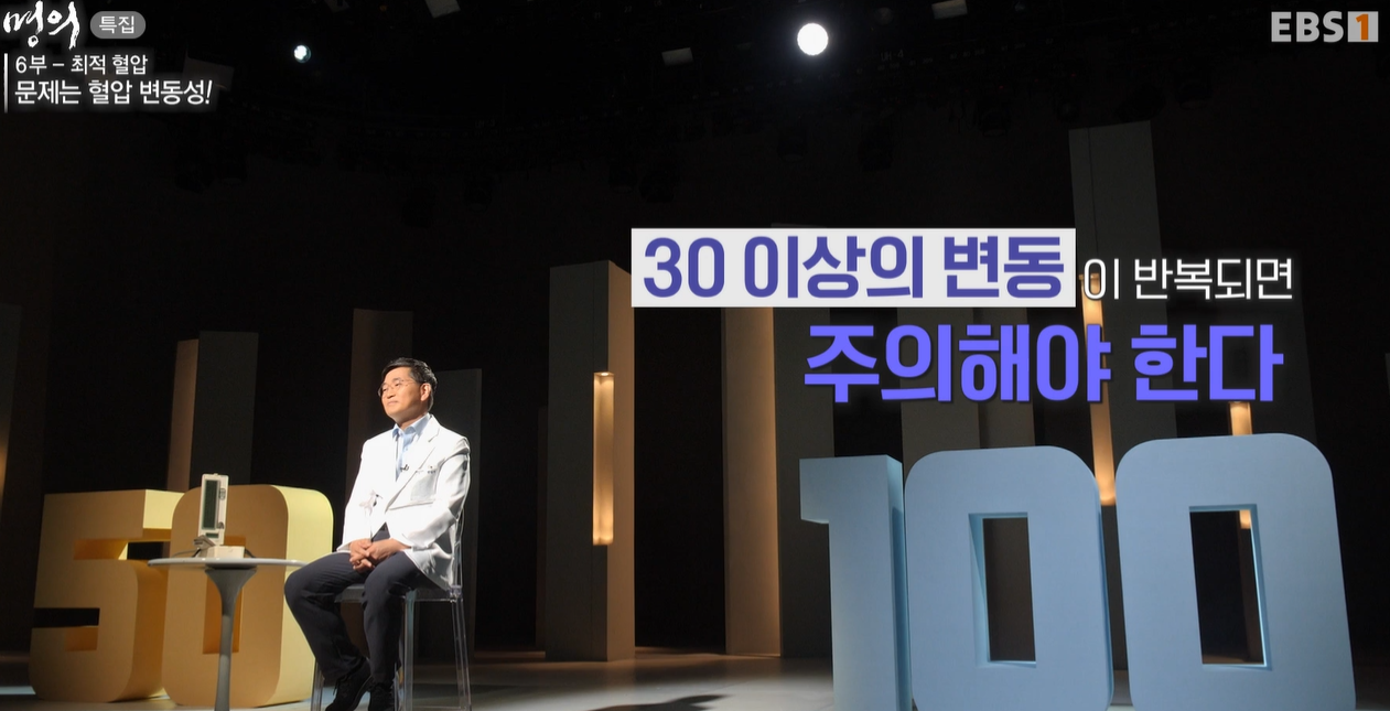 지난주 진료실에서 혈압이 130/80이 나왔는데, 이번 주에 진료실에서 160/90이 나왔다면 30이라는 변동성이 생긴 것인데, 30 이상의 변동이 반복된다면 주의해야 합니다.