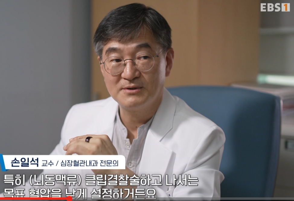 그런데 수술 후에는 혈압이 낮아졌습니다. 이것은 뇌동맥류 클립결찰술 이후에는 목표 혈압을 더욱 낮게 설정합니다. 압력이 높아질 경우 클립이 풀리거나 놓칠 위험이 있기 때문입니다. 그래서 혈압약을 조금 더 강화하면서 혈압이 많이 떨어졌는데 앞으로 적절한 혈압의 변동폭을 줄여나가는 것이 관건입니다.