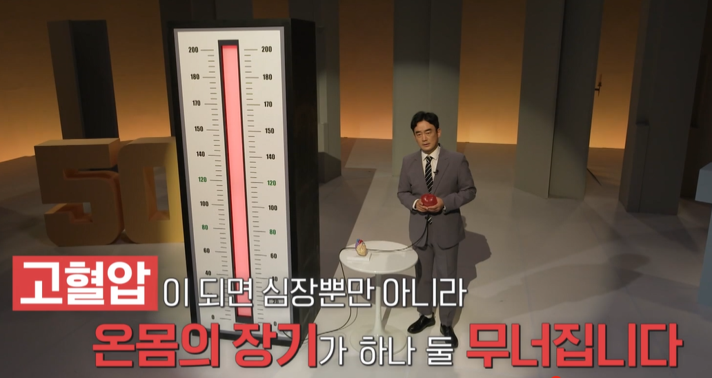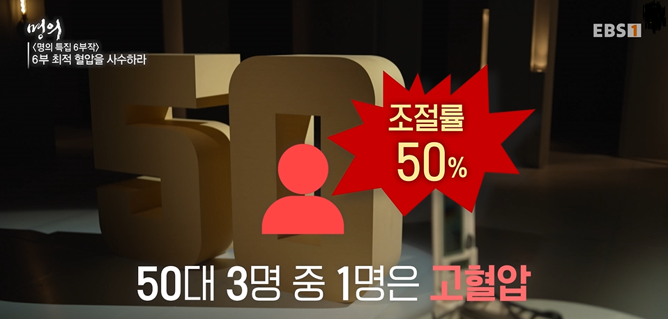 우리나라 50대 3명 중에 1명은 고혈압이며, 그중에 혈압을 제대로 관리하는 사람의 비율은 50%입니다. 나도 모르게 치솟는 혈압이 일상을 무너뜨릴 수 있는 심각한 합병증으로 다가올 수 있습니다. 기본적으로 최고혈압(수축기 혈압)은 120mmHg, 최저혈압(확장기 혈압)은 80mmHg인데, 50대부터 최적혈압을 사수하지 못한다면 우리의 노후가 무너질 수 있습니다.