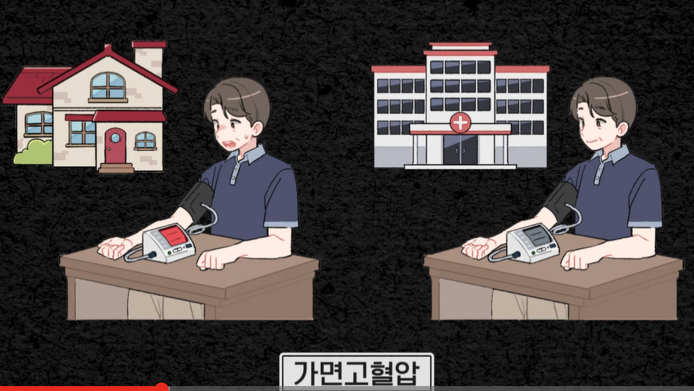 가면 고혈압: 반대로 집에서는 고혈압인데, 병원에서는 정상 혈압으로 나오는 경우입니다.