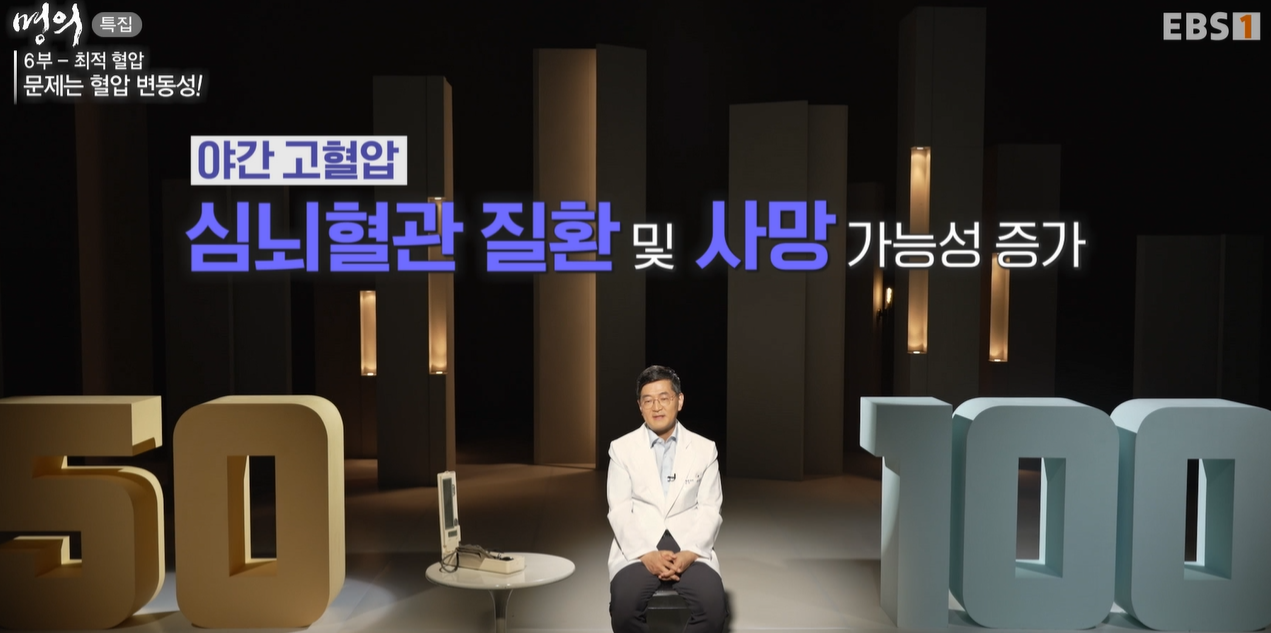EBS 명의는 매주 금요일 저녁 9시 55분 ebs1에서 방영하는 프로그램입니다. 오늘은 명의 특집 6부작 중에서 '100세 건강 50부터 준비하라! 6부 최적 혈압을 사수하라' 편에 대해서 리뷰하도록 하겠습니다. 여러분께 정확한 정보 전달을 위해서 리뷰한 것이며, 방송을 꼭 다시 보실 것을 권해드리며 모든 저작권은 EBS1에 있음을 알려드립니다.