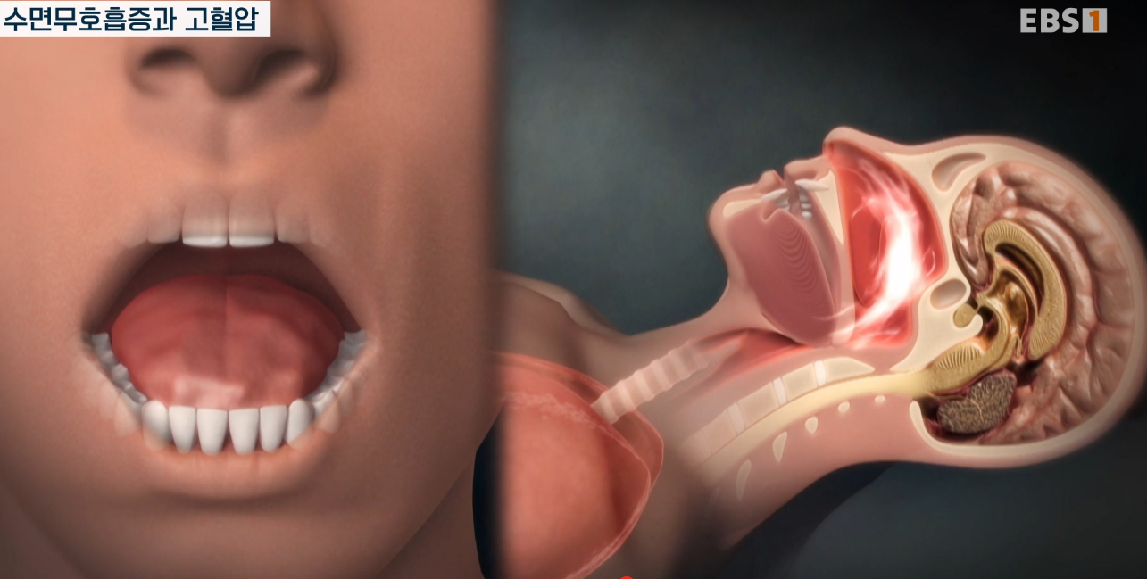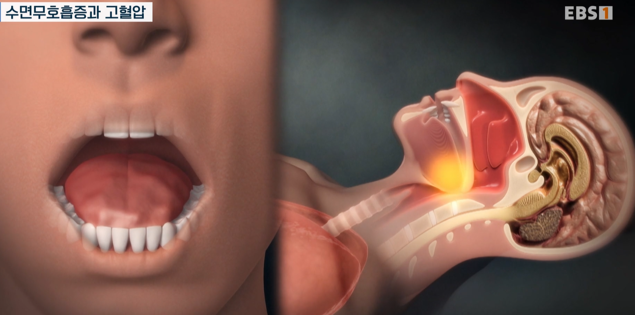 수면무호흡은 잠을 잘때 우리 몸의 산기도가 막히면서 발생합니다. 무호흡 상태에서는 숨을 쉬기 위해서 잠이 깨면서 교감 신경계가 반복적으로 자극을 받고, 교감 신경계의 활성화는 심박수와 혈압을 높이게 됩니다.