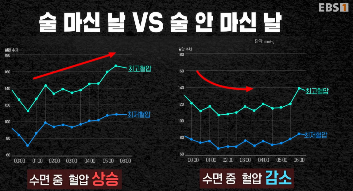 술을 마시면 알콜이 소화되는 과정에서 아세트알데하이드가 나오는데, 알콜이 혈관을 확장시켜서 일시적으로 혈압을 떨어뜨리지만, 술이 깰 때쯤 아세트알데하이드가 축적되면서 혈관이 수축되면서 혈압이 음주 전보다 더 올라가게 됩니다.