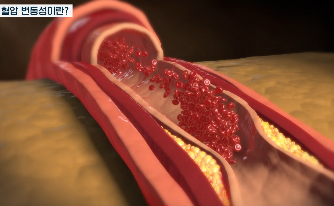혈압 변동폭이 큰 환자는 24시간 혈압 변동폭이 클 뿐만 아니라, 계절·장소 등 외부요인에 따라서도 혈압이 요동칩니다. 그럴 경우 혈압이 안정적인 사람에 비해 더욱 고혈압에 자주 노출될 수밖에 없습니다. 또한 우리 뇌는 혈압을 일정하게 유지하기 위해 수축과 이완을 일정하게 반복하는데, 혈압의 변동폭이 커지면 혈관이 탄성을 잃고 손상돼 심장과 뇌, 즉 심뇌혈관에 나쁜 영향을 주게 됩니다.