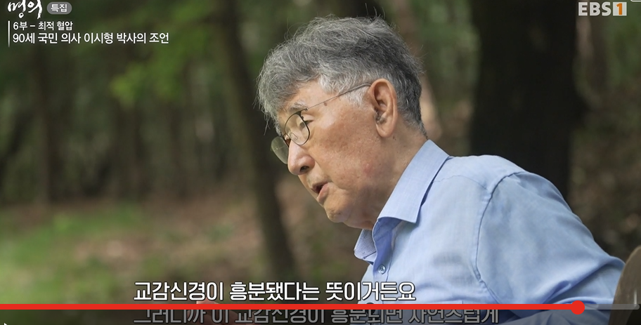 이시형 박사는 '화병'을 의학 용어로 정립시킨 우리나라 정신의학계의 거목입니다. 그는 혈압을 잘 다스리기 위해서는 스트레스 관리를 잘해야 한다고 조언합니다. 그의 말씀을 옮겨 보면 다음과 같습니다. "화가 난다는 것은 교감신경이 흥분했다는 것이고, 교감신경이 흥분하게 되면 자연스럽게 혈압이 따라서 올라갑니다. 현대인에게 스트레스는 피할 수 없는 운명과도 같습니다. 따라서 스트레스를 운명처럼 받아들이는 자세가 필요합니다."