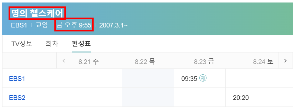 TV 프로는 다음과 같고, ott 영상은 EBS를 통해서 시청가능하십니다.